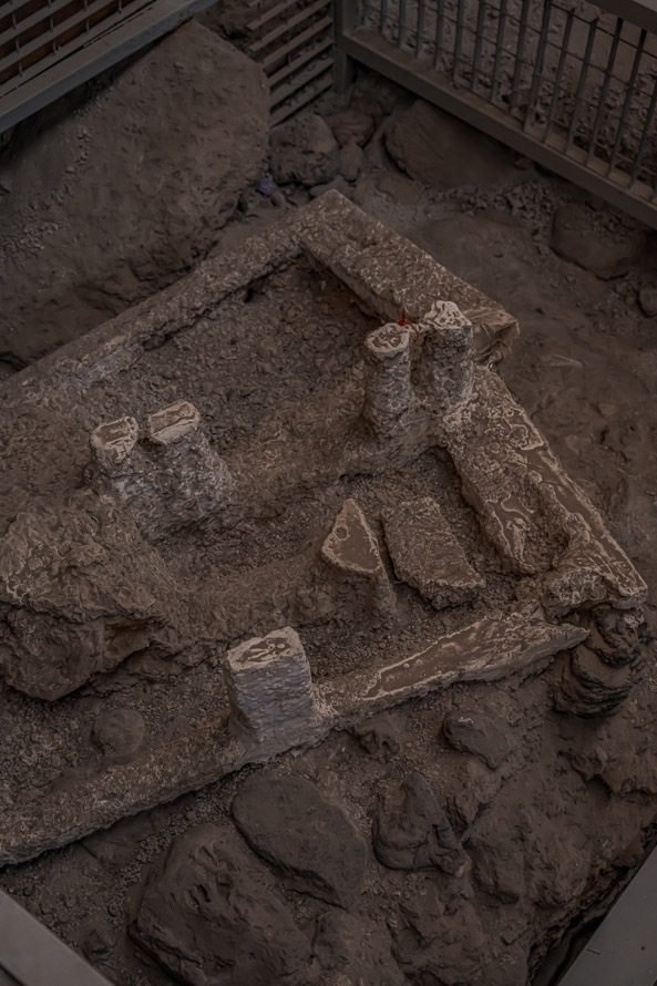 The site at Akrotiri is unique as it doesn’t just boast a few orphaned pillars and columns – it is where the ancient town of Akrotiri actually stood! Most of the ancient town has survived despite its seemingly fragile mud-brick structures.